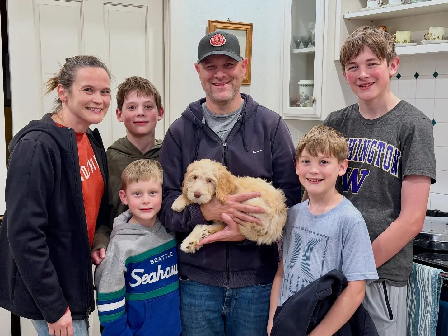 We got Matilda in 2014. One year later we decided that with all three children away at college we should get another Australian Labradoodle and start breeding them. In 2015 we bought one of Tilly's unaltered little sisters from Pine Lodge Labradoodles. In mid-2017, we bred Penny with Brennan, another Pine Lodge Labradoodle. Look at our Labradoodling blog and our Puppies pages to see lots and lots of pictures. There are more pictures on Instagram.