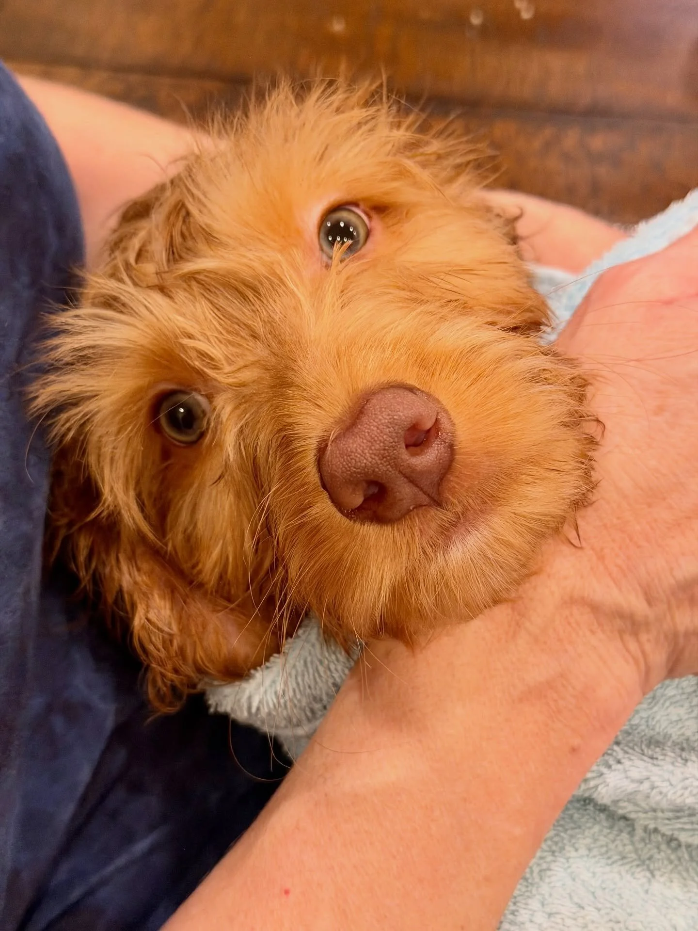 Australian Labradoodles are a delight to live with. Many people who are allergic to dogs can have an Australian Labradoodle. Not only are they intelligent, but they are also very funny. With their floppy ears, wide-set eyes and wavy or curly coats, they can look like muppets. When introducing them, we like to tell people that "yes, they are as silly as they look." They will put on a sudden burst of speed, something Australian Labradoodle owners call "zoomies" which is both fun to watch and helpful in getting them to rest. While resting they can assume what we call the "attack position" where their bellies are exposed, legs splayed out and tongue hanging out of their head that's lying on the ground. Australian Labradoodles are in love with the dishwasher. Anytime we are loading it they will be waiting to inspect everything that goes in.