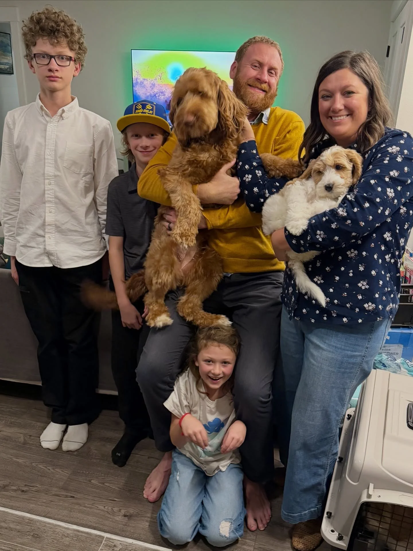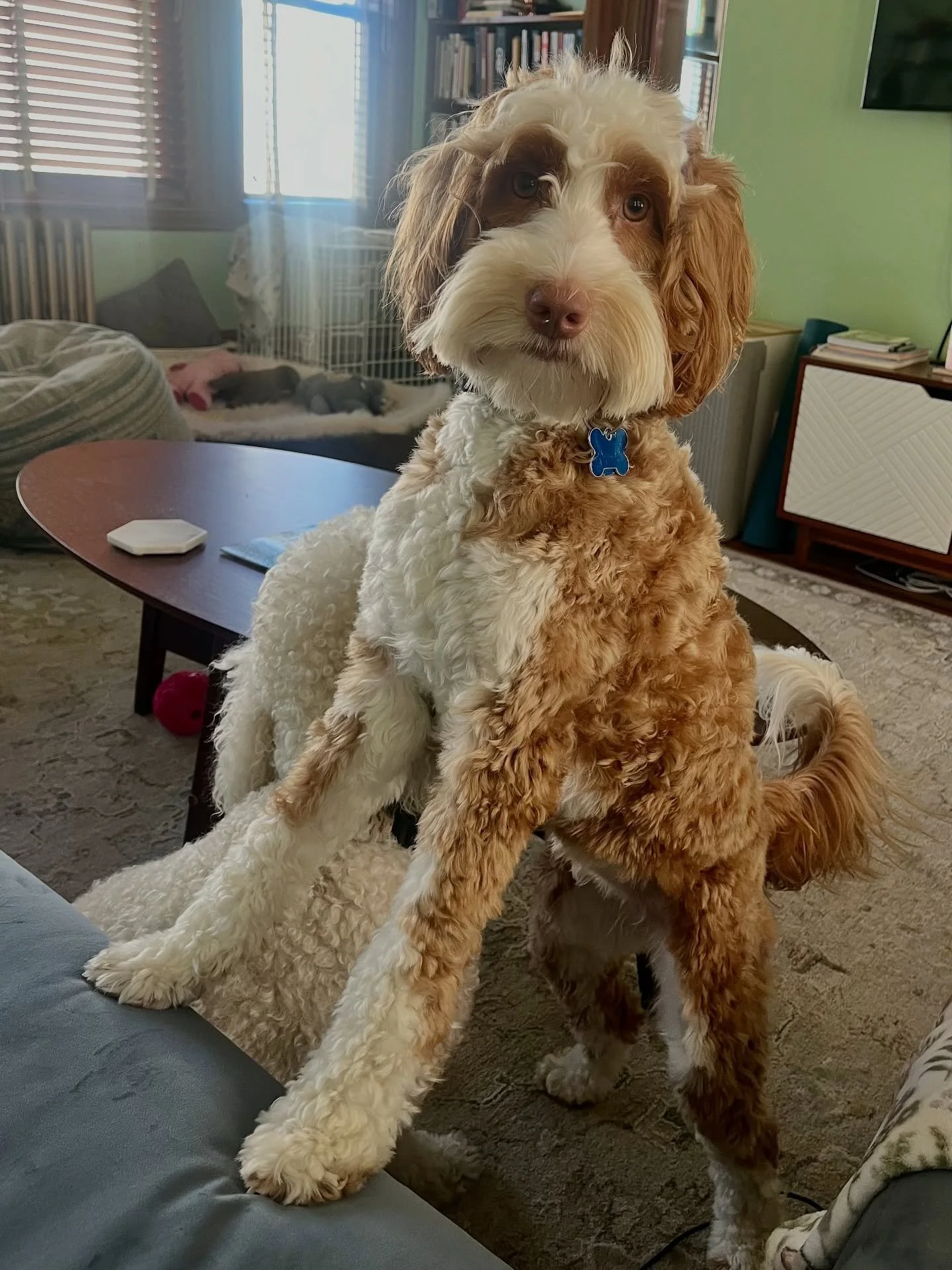 We got Matilda in 2014. One year later we decided that with all three children away at college we should get another Australian Labradoodle and start breeding them. In 2015 we bought one of Tilly's unaltered little sisters from Pine Lodge Labradoodles. In mid-2017, we bred Penny with Brennan, another Pine Lodge Labradoodle. Look at our Labradoodling blog and our Puppies pages to see lots and lots of pictures. There are more pictures on Instagram.